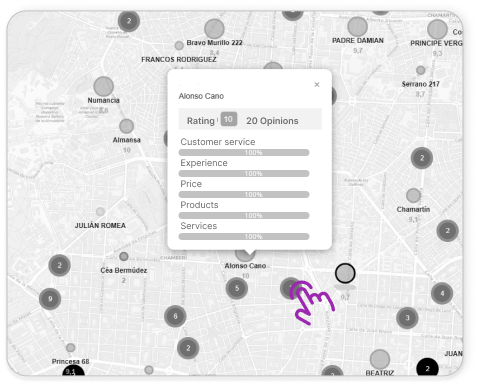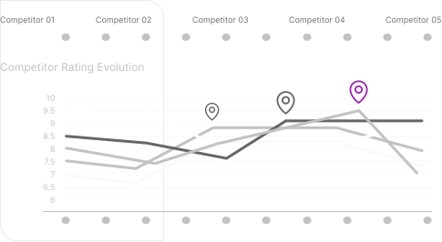 Discover where you rank and why. Track your brand’s evolution over time and identify which aspects customers discuss most about your competitors.