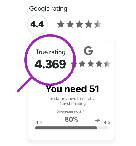 Your Google rating is more precise than you think. Google uses three decimals internally but shows only one. True Rating uncovers your actual score and tracks daily changes so you can respond quickly.